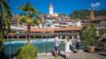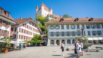 Weisst du, wie die Thuner Hochtrottoirs entstanden sind? Oder warum die Einkaufsstrasse Bälliz von zwei Flussarmen umflossen wird? Die Thuner City Guides verraten es dir auf der klassischen Stadtführung durch die Thuner Altstadt und auf den Schlossberg. Es erwartet dich ein spannender Rundgang mit spannenden Hintergründen zu der traditionsreichen Kultur, die bis in die Steinzeit zurückreichende Geschichte und dies vor einer einmaligen Kulisse. Die einzigartige Lage Thuns zwischen See und Alpen prägen das historische und moderne Ortsbild.