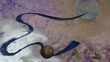 Mit Fächerpinsel und Spray schafft Rüttimann Werke, die sich je nach Licht und/oder Blickwinkel lebhaft verändern!