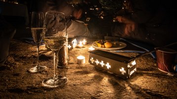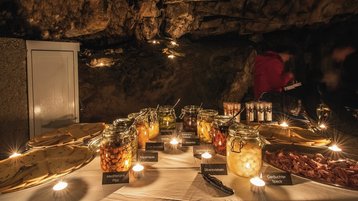 Gut ausgerüstet mit allem, was es für ein leckeres Raclette braucht und einer isolierenden Sitzmatte nehmen Sie in der Raclette-Grotte Platz. Wir servieren ein reichhaltiges Raclette à discrétion – mit regionalem Raclettekäse, Speck, eingelegtem Essiggemüse und Kleingebäck zum Kaffee.
