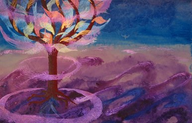Avec pinceaux-éventail et spray Rüttimann crée des oeuvres dont les couleurs et nuances changent selon la lumière et/ou l'angle de vue.